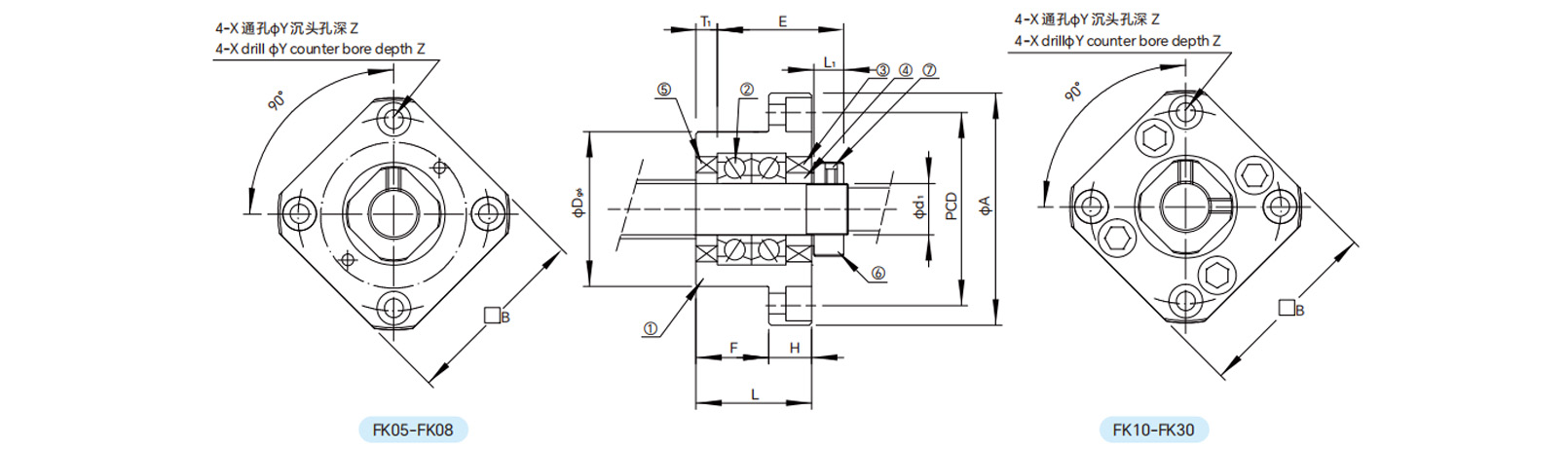 | FK10 | 10 | 27 | 10 | 17 | 29.5 | 34 | -0,009 -0,025 | 52 | 42 | 42 | 7.5 | 5 | 4.5 | 8 | 4 | M3 | 16 | 6000/7000ZZ | 0.21 |
