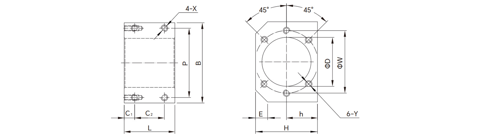 | Facilidad de instalación | Listo para instalar. Con orificios de montaje estándar (por ejemplo Dimensiones P, W, Y) y una superficie de referencia de centrado, no requieren mecanizado ni ajuste in situ, lo que reduce significativamente el tiempo de montaje. | Requieren diseño, mecanizado, taladrado y roscado internos, lo que implica un proceso engorroso y dificulta la alineación. | El diseño estandarizado simplifica la integración y garantiza la precisión y consistencia del montaje. |